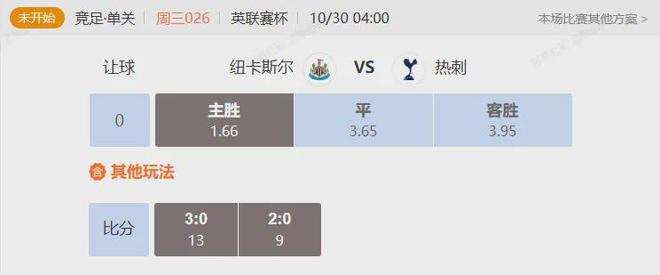 竞足 周三026英联赛杯纽卡斯尔VS热刺